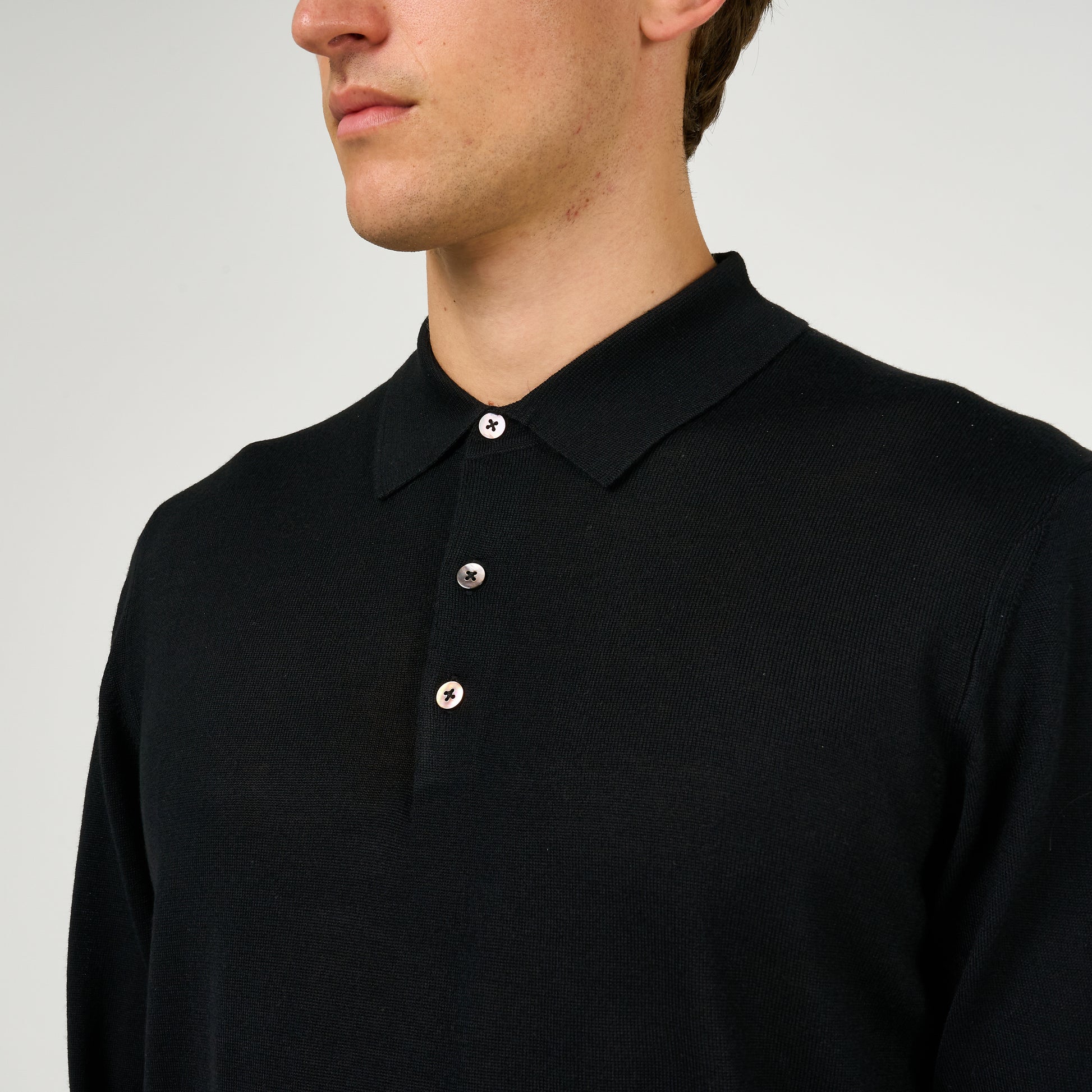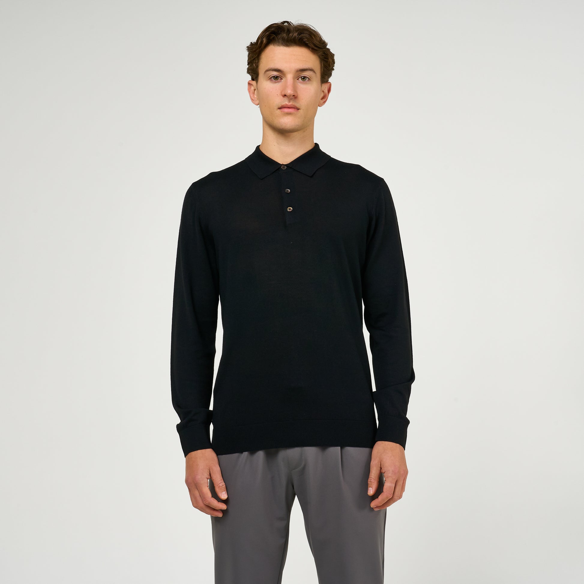 Extra Fine Wool Long Sleeve Polo Black