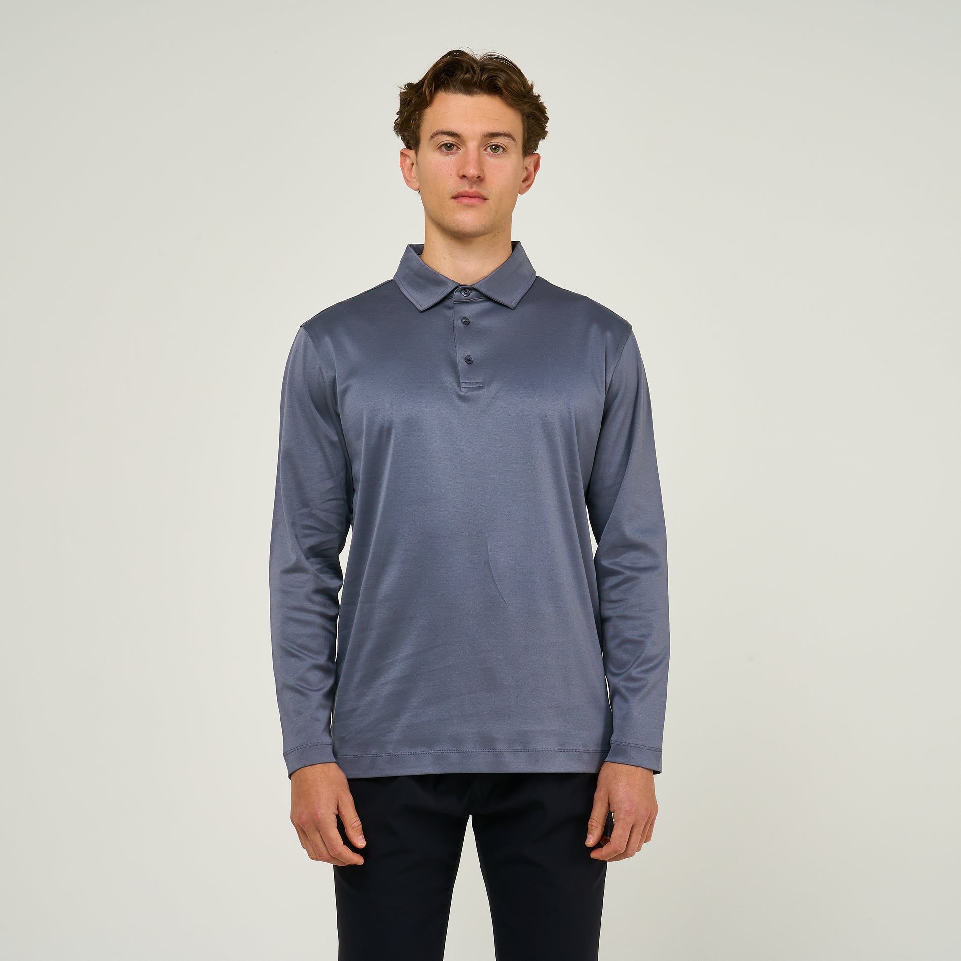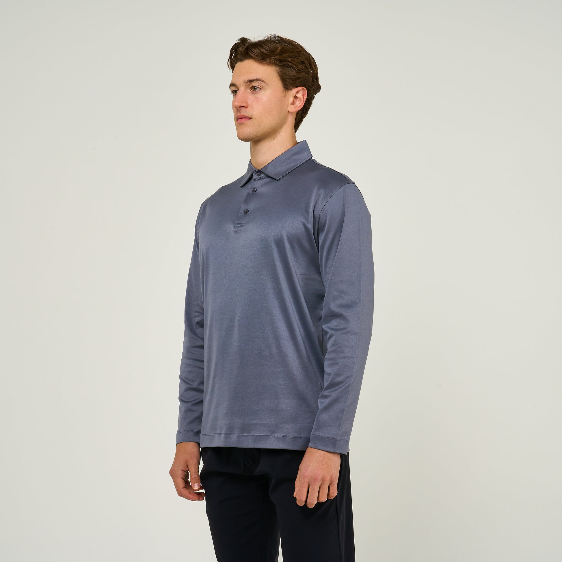 EGYPTIAN COTTON LONG SLEEVE POLO | STEEL